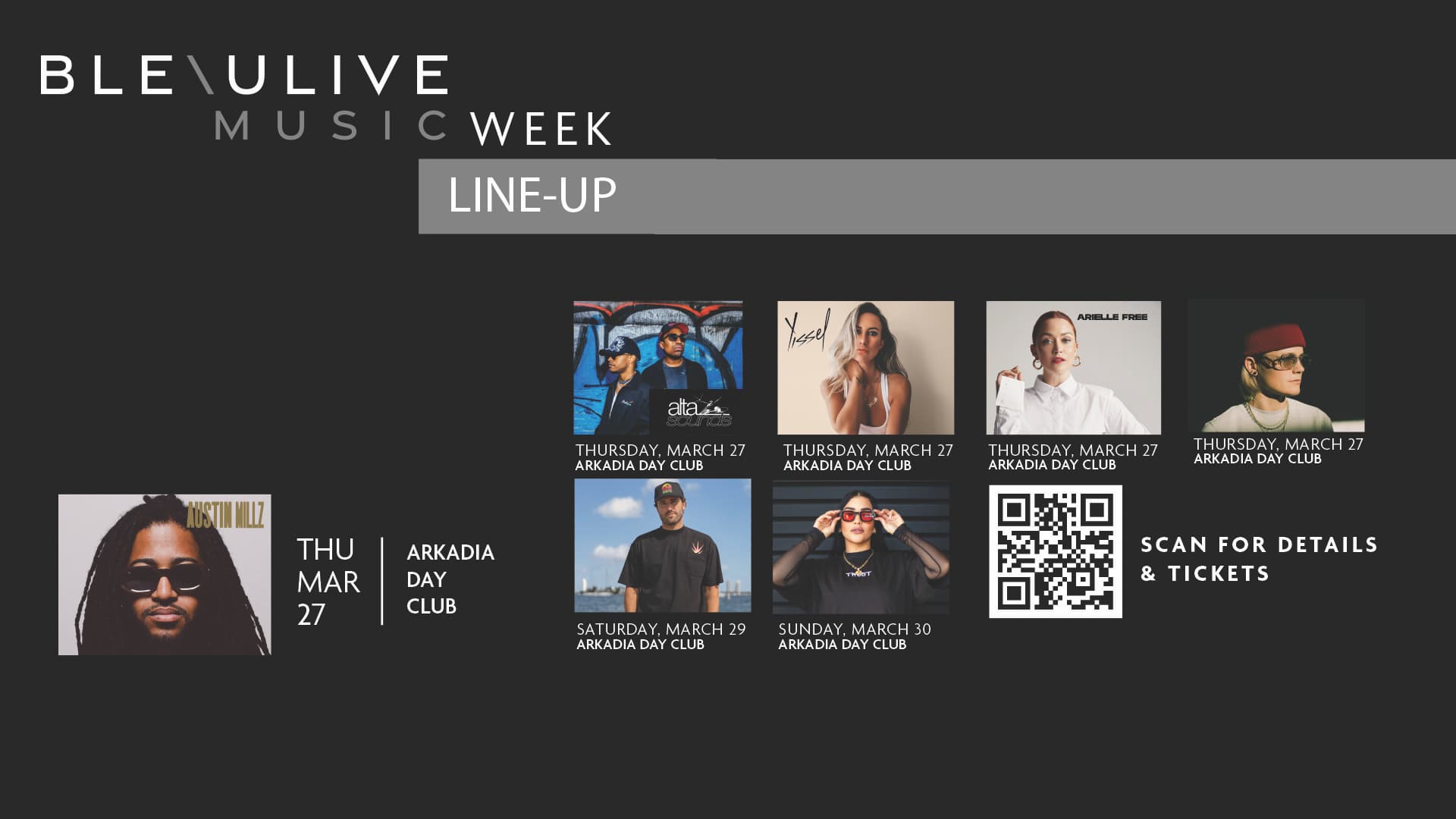 Austin Millz brings his signature mix of hip-hop and dance to Arkadia Day Club at Fontainebleau Miami Beach. Enjoy high-energy sets from Yissel, Arielle Free, J. Worra, and Brody Jenner while soaking in the vibrant atmosphere. Kick-off Music Week with exclusive performances from BLEAULIVE Music.