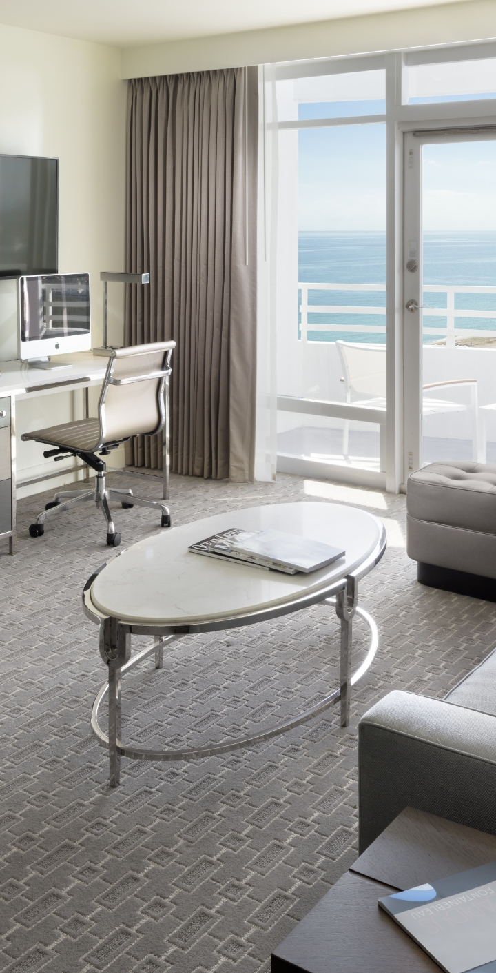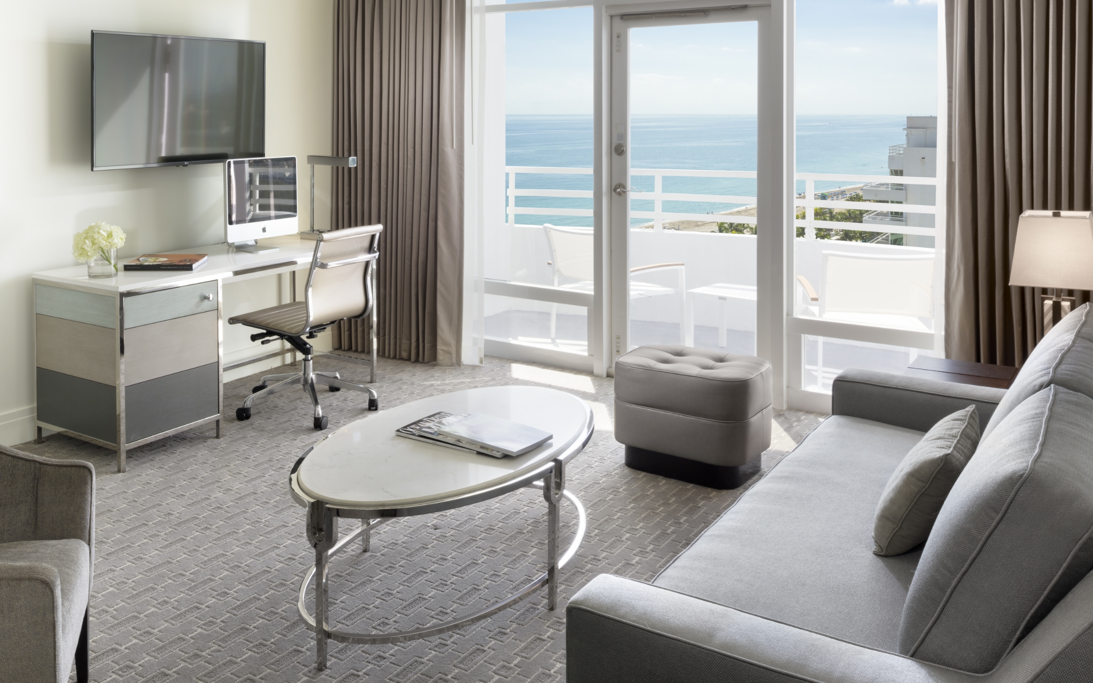 Discover one-of-a-kind suites with private balconies that offer breathtaking views of downtown’s twinkling lights or the shimmering Biscayne Bay. The spacious Junior Suite features a cozy sitting area with a sleeper sofa and a sleek glass-enclosed walk-in shower.