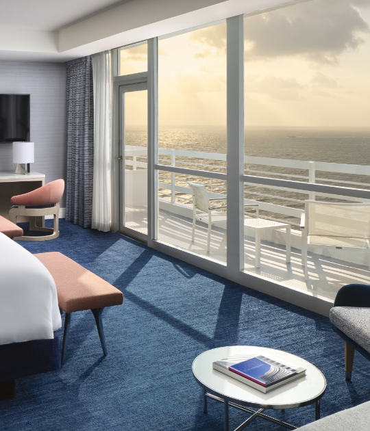 Discover paradise on the top two floors of the iconic Chateau Tower. Floor-to-ceiling windows provide stunning, unobstructed views of the Atlantic Ocean, while the spacious balcony overlooks our signature Bowtie pool. These suites include a large marble bath with glass-enclosed shower, king or two queen beds, and plenty of space to unwind after a day in the sun.