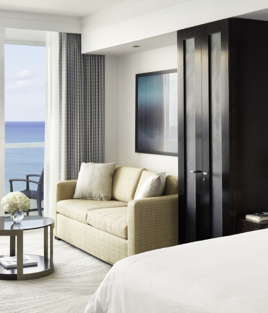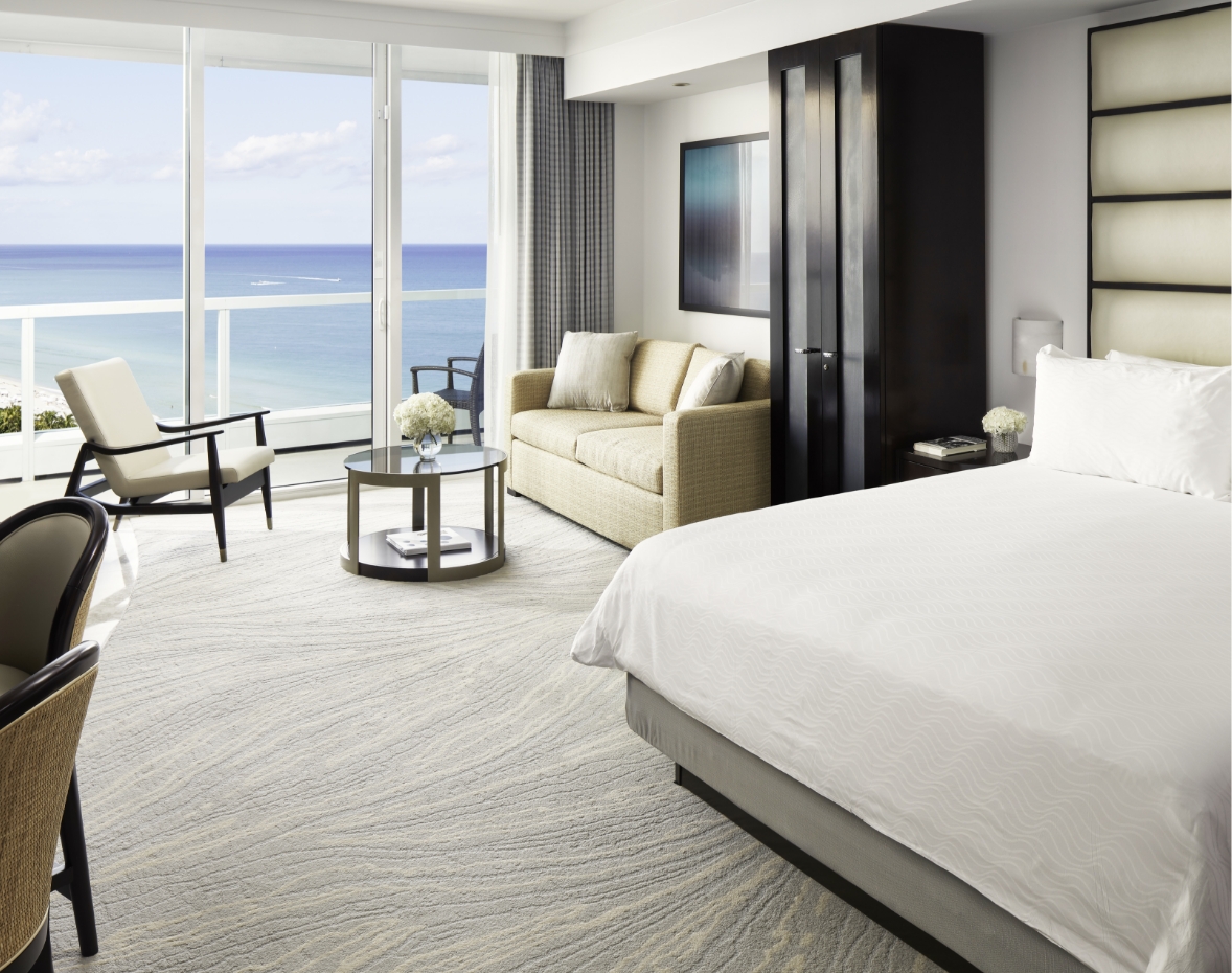 Discover the spectacular in these popular suites. Immerse yourself in legendary elegance. Admire the stunning view of white sand beaches along this the Atlantic, from your oversized furnished balcony. The glamour continues with floor-to-ceiling marble décor, granite bathroom with whirlpool tub and glass-enclosed walk-in shower, and kitchenette.