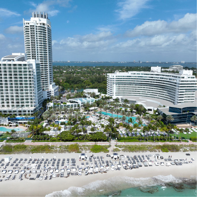 Fontainebleau is a globally renowned name in hospitality with a prestigious 70-year legacy. Our story began in 1954 along the famed shores of Miami Beach, where the original resort turned heads and hearts with signature design from Morris Lapidus, a breathtaking staircase, couture-wearing clientele, and celebrity guests like Frank Sinatra. By 1964, Fontainebleau was a go-to set location for Hollywood films, featuring Prominently in hits like Goldfinger.
